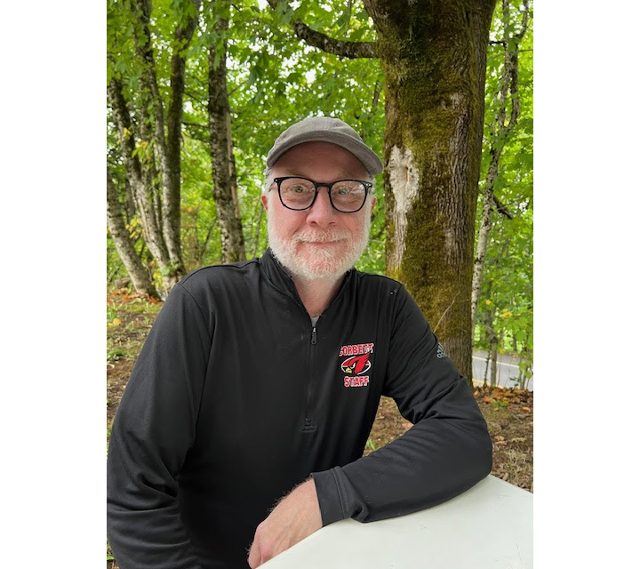 Chris was born in San Diego. His father was enlisted in the Navy and after serving, his father moved the family to Mississippi. He attended college, getting a degree in landscape architecture. His mom was an administrator at a bank. When Chris was five years old, his family moved to Richmond, Va. Chris was an only child and was shy, playing soccer in his youth. His favorite memories as a child were spending time on his grandparent's farm in Mississippi each summer, horseback riding, fishing, working in the garden, and eating fresh food. Chris loved to spend hours cooking with his grandmother and working with his grandfather in his wood shop. In high school, Chris took a photography class and enjoyed it so much that he built a dark room in the family home! After graduation, Chris went to college in Mississippi to study landscape architecture. He had wanted to attend an art college, but it was not a possibility. After one year, Chris left school because his heart was not in it. He stayed in Mississippi to work as a photographer for the local newspaper. After meeting international students and parents of friends who had traveled abroad, Chris decided to move back home to Richmond and start working in restaurants. His first job was in a bakery in Carytown, making scones, sandwiches, and a variety of baked goods. He later went on to work at other bakeries, an Indian restaurant, and a handful of fine-dining restaurants. All of these experiences taught him a variety of food preparation and cooking skills. In 1995, Chris made a move to Portland and lived downtown. Greg Higgins, owner of Higgins restaurant, told him he needed more experience with specific Northwest food. Chris worked in a variety of restaurants to gain knowledge of local food and cooking styles. He then moved in 1996 to Corbett to work on an organic farm. He had a strong desire to grow a variety of organic foods. Chris met his wife Megan while she was working at the Blue House in Springdale, a local bakery. They began dating in 2000 and married in 2003 at her parent's home in Latourell. They rented a home on the Scenic Highway, across from Menucha for the first three years. Megan had gone to college to become a teacher while Chris began working at Multnomah Falls as a cook, first part-time and then full-time in 2002. He started as a line cook when going full-time and then became a sous chef in 2003, later becoming an executive chef. He worked at the restaurant for 20 years before covid hit and he was laid off. He connected with Seth Tucker at the Corbett School District and was hired in 2021 as a head cook. Megan and Chris bought a home in Troutdale in 2008 and eventually decided to make Corbett their home, purchasing Corbett Grade School principal, Michelle Dawkin's home! Chris and Megan have two children, Ethan (born in 2007) and Eleanor (born in 2010). They both attend school in Corbett where their mom has been a teacher for 18 years, teaching K-1. Chris and his family love to cook together and be active in the great outdoors. Chris says they are a cat family, with four cats, which all get lots of love and attention! The new position for Chris at the high school has given him the opportunity to inspire, challenge, and instruct the students in ways he is passionate about. He looks to encourage them to one day be good cooks and employees, wherever life may take them!